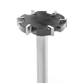 Trotz seiner extrem kompakten Abmessungen ist dieser Fräser ideal zum Planfräsen von großen Massivholzoberflächen und anderen Holzfaserplatten geeignet. Darüberhinaus eignet er sich zur Bearbeitung unebener Holzoberflächen und zum Fräsen größerer Überstände wie Umleimern und anderer Deckschichten wie Resopal. Die 45°- Fase an der Schneide erhöht die Laufzeit des Fräsers und senkt die Beanspruchung der Schneidekante. Seine sechs Schneiden sorgen jederzeit für optimalen Schnitt und einwandfreie Schnittergebnisse.