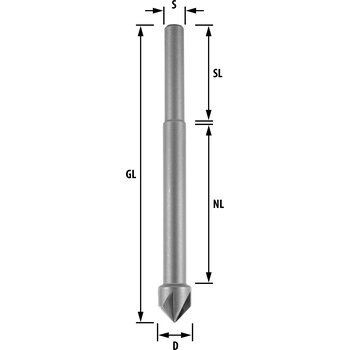 Zum Ansenken und Entgraten von Bohrungen in Weich- und Hartholz. Ähnlich DIN 6446B, mit abgesetztem Zylinderschaft, 90 Grad.
