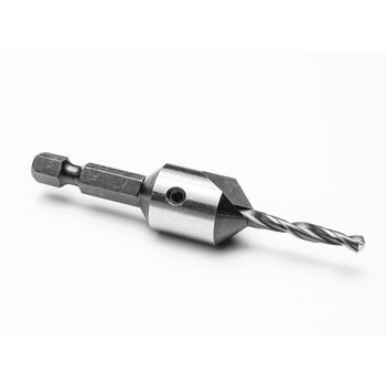 Pilotbohrer zum gleichzeitigen Bohren und Ansenken in einem Arbeitsgang. Zum Beispiel zum Bohren von Terrassendielen. Sechskantschaft passend für alle Standard Bitaufnahmen. Die Bohrtiefe lässt sich individuell einstellen. Der Senker besitzt eine optimale Spangeometrie für ausrissfreie Senkung. Geeignet für Weichholz und speziell für exotisches Hartholz. Speziell geeignet für den Einsatz mit Akku-Bohrmaschinen.